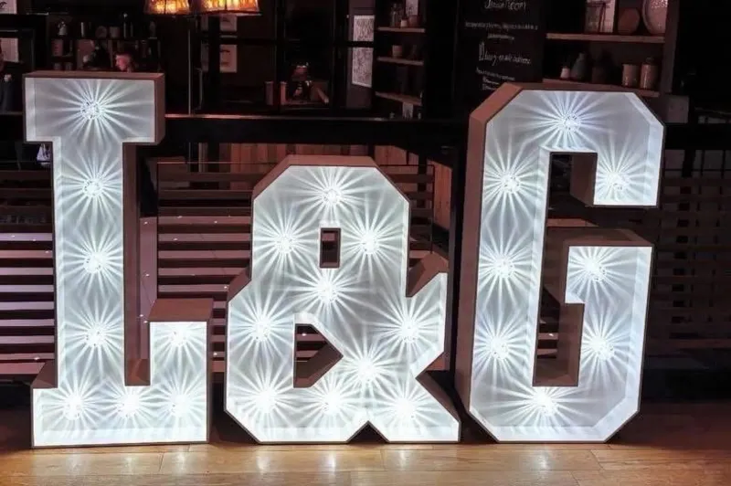 Perfect for engagements, weddings, and corporate events, our LED Initials & €&€ Symbol hire adds a stylish, personalised touch to any occasion. Available across St Helens, Warrington, Wigan, Liverpool, Chorley, Widnes, Runcorn, Ormskirk, Frodsham, Knutsford, and surrounding areas, we bring eye-catching illumination right to your venue.
