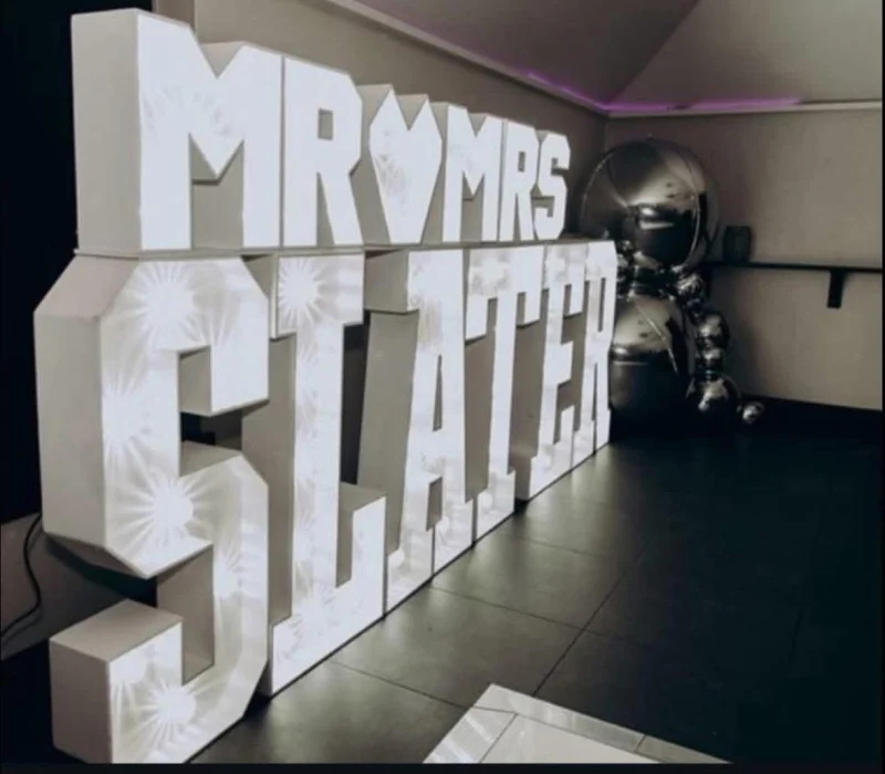 Celebrate your big day in style with our elegant mini LE Mr & Mrs, complete with your chosen surname for a truly personal touch. Designed to sit beautifully above your setup, these glowing features create a romantic focal point that enhances your wedding décor and photographs.