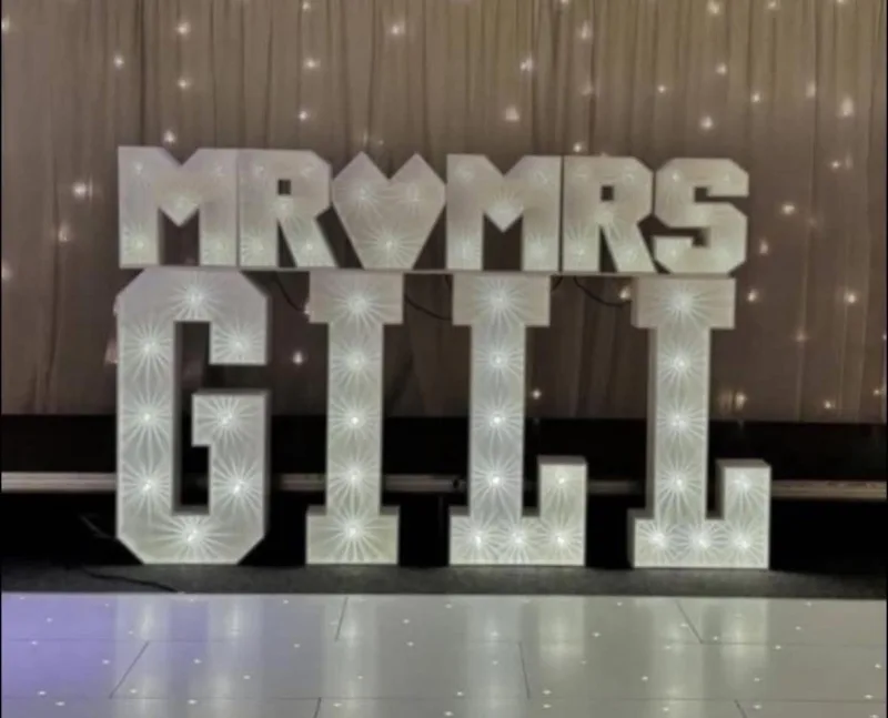 Perfect for weddings, our light toppers are available for hire across St Helens, Warrington, Wigan, Liverpool, Chorley, Widnes, Runcorn, Ormskirk, Frodsham, Knutsford, and surrounding locations - bringing a warm, bespoke glow to your special celebration.